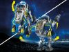 mit funktionierendem Blinklicht (Batterien enthalten). Durch die aufklappbare Kabine kann eine PLAYMOBIL-Figur im beweglichen Roboter mit Greifarm und funktionsfähiger Bolzenkanone Platz nehmen.