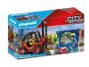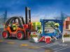 To load pallets and smaller freight, the dockworkers use the maneuverable forklift. The driver is picking up a pallet with paint buckets and tons, to transport it to the freight storage. Carefully, he picks up the pallet with the lifting forks and moves it up a bit before continuing the journey. But what is happening? Apparently the lifting carriage was not properly engaged, the paint buckets start to wobble and the paint spills onto the floor. Oh no! Well, that was not a successful transport!The playset contains two PLAYMOBIL figures, a forklift, two paint buckets, two tons, paint splashes, a broom and many other extras. The forks of the forklift can be moved sideways and thus adapted to the appropriate load.