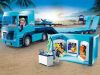 Playset includes two PLAYMOBIL figures, a low loader with container, a surf shop with counter and surfing equipment, and many other extras for exciting role play. The container can be fixed on the loading area with the tension straps. The driver's cab of the truck can be folded forward and the roof is removable.