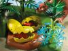 Watch as the mother Stegosaurus babies are hatched from their eggs. Nearby, a mother and baby lizard are watching. Set includes mother Stegosaurus and three babies, three dinosaur eggs, adult and baby lizard, landscape with trees and flower, and other accessories.Sold out