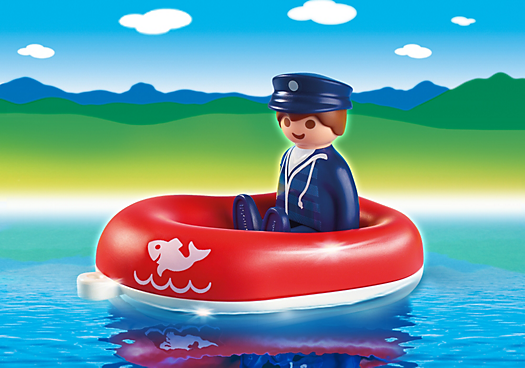 Sail across the lake with the Man with Water Raft. With a bright and colorful design and large, rounded pieces, this PLAYMOBIL 1.2.3 set is ideal for toddlers. Kids will love playing with this raft in the bath tub and pool. Set includes one figure and water raft.