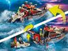 Incl. rescue drone with droppable floating tires to save the shipwrecked person. With the functioning cable winch the speedboat, which has caught fire, is pulled onto the rescue cruiser.