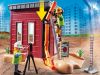 The mini excavator is used for fast and flexible work. First the construction worker uses the mini excavator to dig the stones out of the excavation pit. Once everything is cleared, the sewer pipes are laid in the foundation. As soon as all the pipes are in the right position, the base plates follow. Every step of the work is closely monitored by the architect. With the help of the angle measuring device, she measures all walls so that the house will later stand straight and safe. This house will be a masterpiece.The playset contains two PLAYMOBIL figures, a mini excavator with chain drive, an angle measuring device with tripod, a house corner with two wall elements, floor plate, flat roof and wooden floorboards, as well as many other construction worker extras.