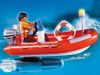 Set includes four PLAYMOBIL figures, an operations center with helipad, a helicopter, a rubber dinghy, a surfboard and numerous rescue equipment. The helicopter offers space for two figures, the rotor blades are movable. The inflatable boat floats and can be upgraded with an underwater motor (7350 sold separately).