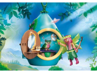 The playset contains a Crystal Fairy with unicorn, a Bat Fairy with salamander, a Forest Fairy man with dragonfly, a magical fairy spring with waterfall, glowing crystal and fog function, crystals, magic key and many other lovely extras. If the crystal flower meadow is filled with water, crystal flowers and a magic key rise. Small clouds of mist can be produced by an integrated fog module.