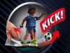 Soccer player with real kick function, soccer ball and 3-sided playable cardboard goal wall for training.
