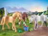 Le Ranch de la Cascade est suffisamment grand pour accueillir de nombreux chevaux, que ce soit dans les écuries ou dans les enclos. Un Morgan, un Quarter Horse et un Shagya Arabe sont prêts à vivre de belles aventures au Ranch de la Cascade. Le coffret comprend trois chevaux et des accessoires.