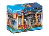 Pirates and soldiers have been fighting a bitter battle for supremacy on the seas, for many years. The brave red rock soldier believes his precious treasure to be safe in the bastion, but a cunning pirate sets out to steal the chest with the gold. Luckily the small fortress is well secured with a detachable grid wall and a cannon with bullets. Will the pirate still succeed in stealing the treasure? PLAYMOBIL play boxes offer great fun on the road. All figures and accessories are stowed away in the box in no time at all and the practical carrying handle makes it easy to take the play set with you wherever you go.Uitverkocht