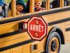 Met de chique Amerikaanse schoolbus van PLAYMOBIL wordt de dagelijkse rit naar school een belevenis. Bepakt met hun schooltassen wachten de leerlingen geduldig bij de bushalte tot de grote gele bus stopt. Daar is hij al en de vriendelijke chauffeur opent de deuren. Nu kan iedereen langzaam achter elkaar instappen en een stoel zoeken. Nu gaat de reis verder, want binnenkort starten de lessen. De realistisch vormgegeven bus biedt plaats aan zes figuren en heeft een uitklapbaar stopbord aan de zijkant. In het afneembare dakelement is een knippermodule geïntegreerd, die met een knop in- en uitgeschakeld kan worden. Een vel met etiketten bevat letters in twee talen om op de bus te plakken. De set bevat vier PLAYMOBIL-figuren, een schoolbus in Amerikaanse stijl, een schooltas, een boek, een pen en andere extra's. Met liefdevolle figuren en realistische details nodigt de speelgoedset uit tot fantasierijke rollenspellen.