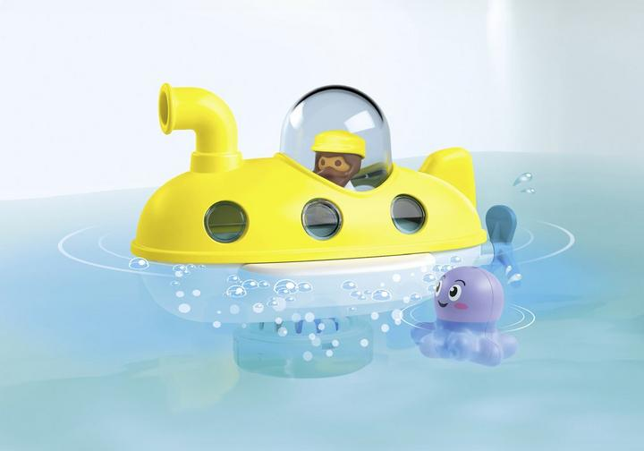 Speciale producteigenschappen:- Onderzeeër met afneembare kap- Kap kan worden gescheiden voor reiniging- U-bootschroef draaibaar (handmatig)- Drie Tinti badtabletten in de kleuren groen, turquoise en paars met aardbeiengeur- Uitneembaar opbergvakje voor de badtablet met draai-/duwmechanisme- Badtabletten verkrijgbaar in een aparte navulverpakking- Water dat in de kleine octopus is binnengedrongen, kan via de afvoergaten worden afgevoerdFiguren: 1 man Dieren: 1 blaasvis Accessoires: 1 onderzeeër, 3 Tinti bad kleurtabletten